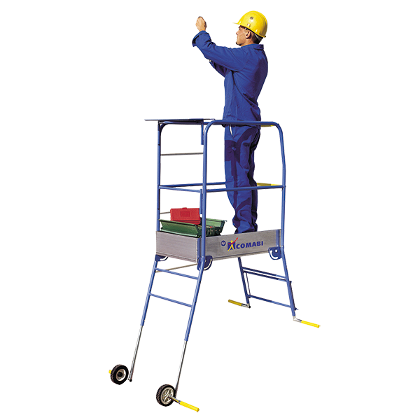 - Plate-forme de travail confortable (0,9 x 0,5 m de superficie) et compacte une fois repliée pour le transport.