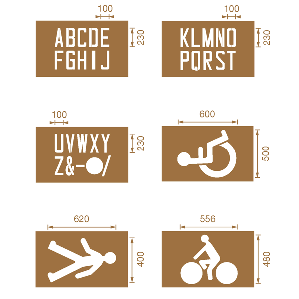 - Motifs : lettres, handicapés, piéton, vélo…