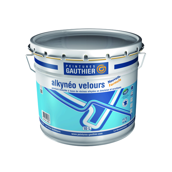 Peinture veloutée pour la décoration des murs et plafonds, à base de résines alkydes et acryliques en phase aqueuse