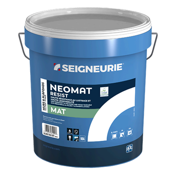 Peinture acrylique d'aspect mat, résistante au lustrage et haute lessivabilité