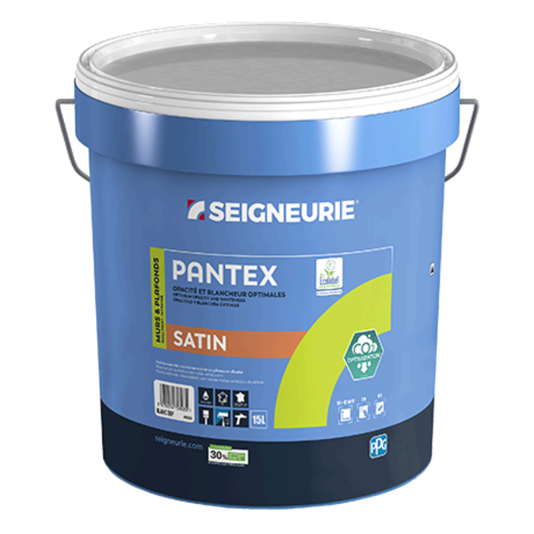 Peinture intérieure aux résines mixtes, d'aspect satin, offrant opacité et blancheur optimales qui bénéficie de la technologie CO2 Optimization