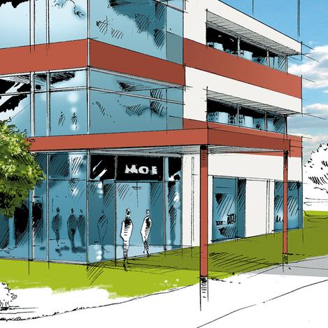 - Constituer votre dossier d’études couleurs avec l’impression des différentes pièces graphiques que vous nous aurez communiquées (plans, coupes, élévations, perspectives, photos…). Ces éléments seront ensuite colorisés suivant le choix de teintes, défini ensemble au préalable. La fiabilité minimum tolérée est de 98 % par rapport au nuancier CHROMATIC®.
